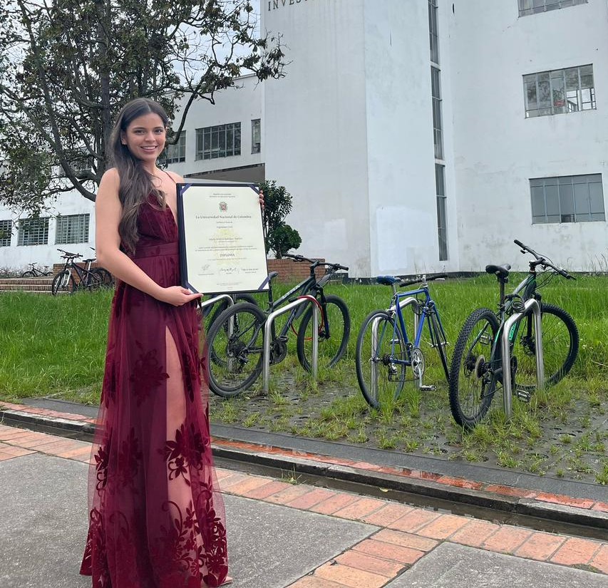 Hoy cursa una maestría en Geotecnia, también en la Universidad Nacional, que resultó como parte de los requisitos de grado, y trabaja como estudiante auxiliar de posgrado en el Laboratorio de Geotecnia de la universidad, donde, según afirma, ha podido desarrollar diferentes proyectos de consultoría en los que se hacen estudios de suelos y diseños de pavimentación. Como parte de su tesis de investigación desde hace dos meses está realizando unas prácticas en el École National des Travaux Publiques de L’État (ENTPE), en Francia, con el objetivo de estudiar y poner en práctica la caracterización del comportamiento de pavimentos.